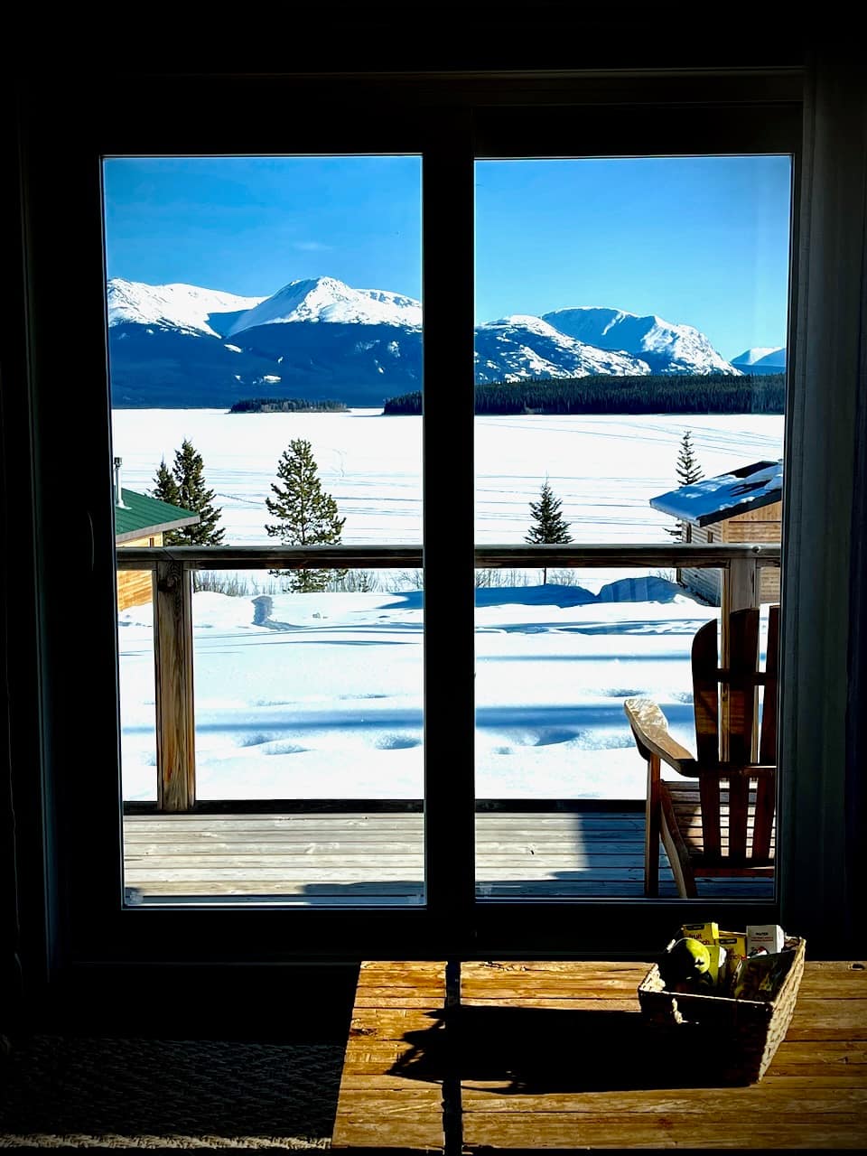 Located just 3 hours south of Whitehorse, this boutique resort offers eight private chalets nestled among spruce forests with views of the surrounding mountains and frozen lake. We stayed in the Aurora Log Chalet Deluxe – a beautifully appointed cabin with vaulted ceilings, massive windows, a cozy fireplace, and a private deck with chairs.